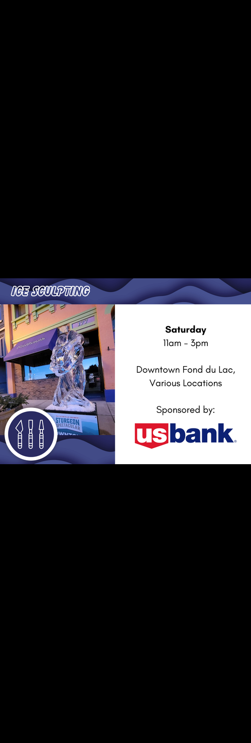 Event Details: Pick up an event brochure at any of the participating locations and walk through beautiful downtown Fond du Lac to see these talented ice carvers create works of art right on the sidewalks of downtown. Get your picture taken with each one. And a special thanks to all the block sponsors for their support!