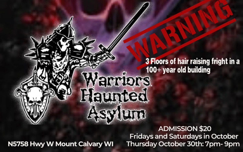 This coming October. Enter Warriors haunted asylum, where three floors await to unleash unrelenting terror. Start on the second floor, inside a vintage, allegedly haunted log cabin, deliberately salvaged to confine the vengeful entities. Then, descend to the basement of the aged building, and just as you think you’ve escaped the horror…You end up outside twisting and turning through an outdoor labyrinth with some deranged individuals. If you make it through that, it leads to a small bonfire where you dry your pants and Rest In Peace.
